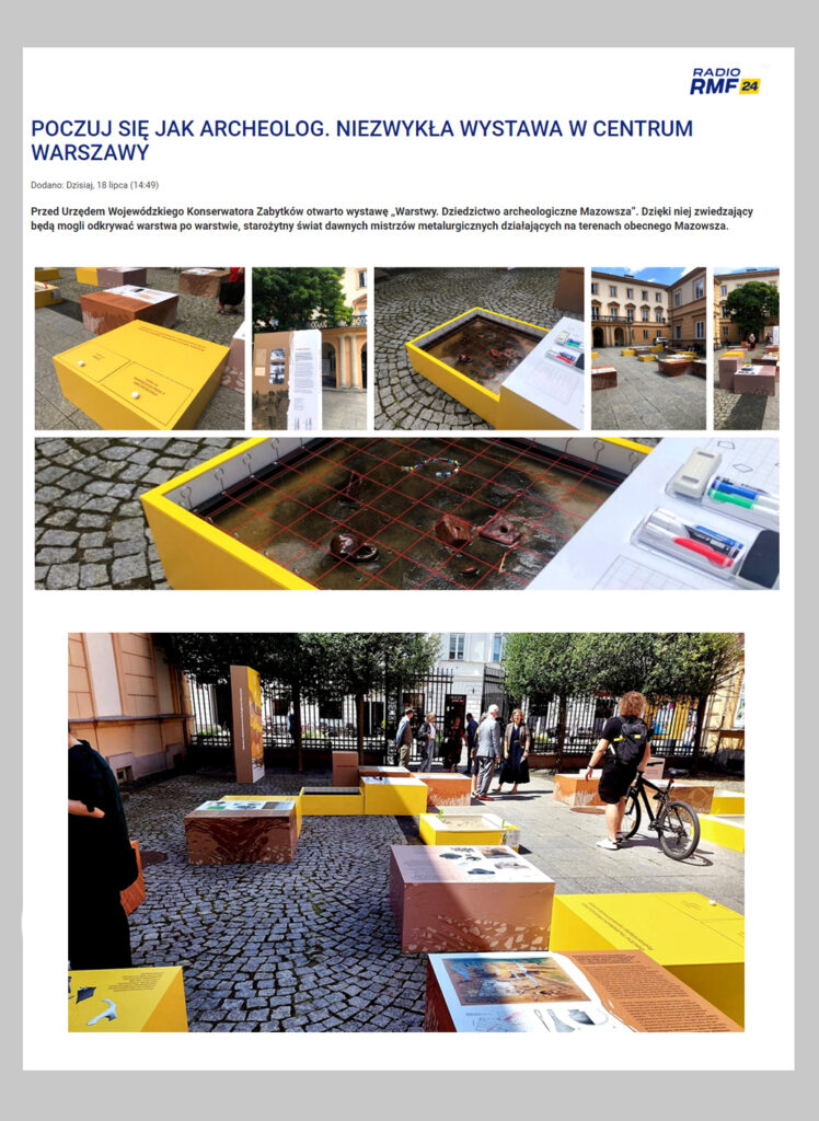 Narodowy Instytut Dziedzictwa objął patronatem honorowym wystawę plenerową „Warstwy. Dziedzictwo archeologiczne Mazowsza”, która przybliża widzom badania archeologiczne, kwestie konserwacji zabytków, a także fenomen regionu – Mazowieckie Centrum Metalurgiczne. Starożytny świat dawnych mistrzów metalurgicznych można oglądać na dziedzińcu Wojewódzkiego Urzędu Ochrony Zabytków w Warszawie do 31 sierpnia.